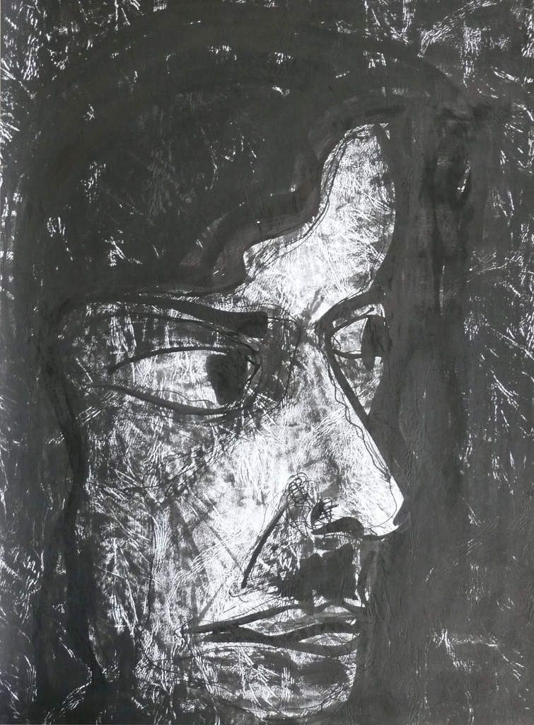 Ces dessins sont caractérisés par la noirceur, la violence, la déstructuration des modèles captés, la déflagration infligée à leur visage. Mais la rage destructrice se conjugue pourtant avec les entrelacs joyeux des lignes qui virevoltent sur le papier, expression du plaisir du geste qui dépose l'encre. Un mot me semble déterminant pour les décrire : affranchissement. Je m'affranchis de toutes les règles. Sans entrave, je me laisse aller à la liberté, avec comme corollaire une sensation de solitude absolue dans la réalisation. Je suis maître en mon royaume, mais un royaume vide d’âmes. S'agit-il d'errance, comme pourrait le laisser croire le cheminement apparemment erratique de l'instrument dispensateur d'encre sur le papier ? Non, il s'agit d'une fausse improvisation : je crois improviser mais l'esprit, l'inconscient, le réflexe artistique, je ne sais dire... disons l'esprit, tient le licou serré à la main qui trace. Il s'agit sans conteste d'une sur-présence du moi intérieur, qui envahit tout, violente les modèles ravalés au rang de mèche d'amorçage.